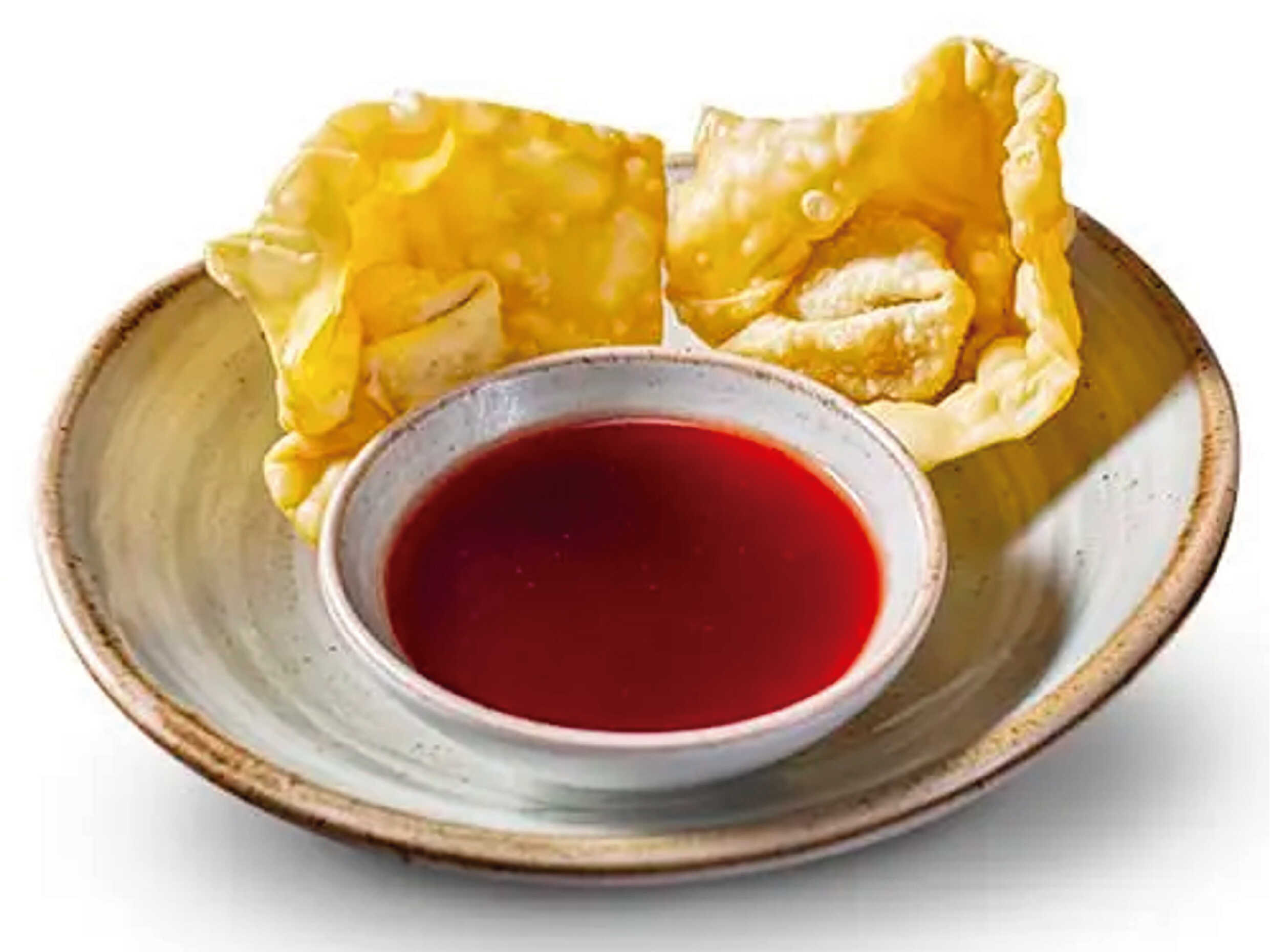 Wantanes fritos x 4 uds.,1 acompañamiento de chaufa de pollo para 2, 2 fondos a elección.