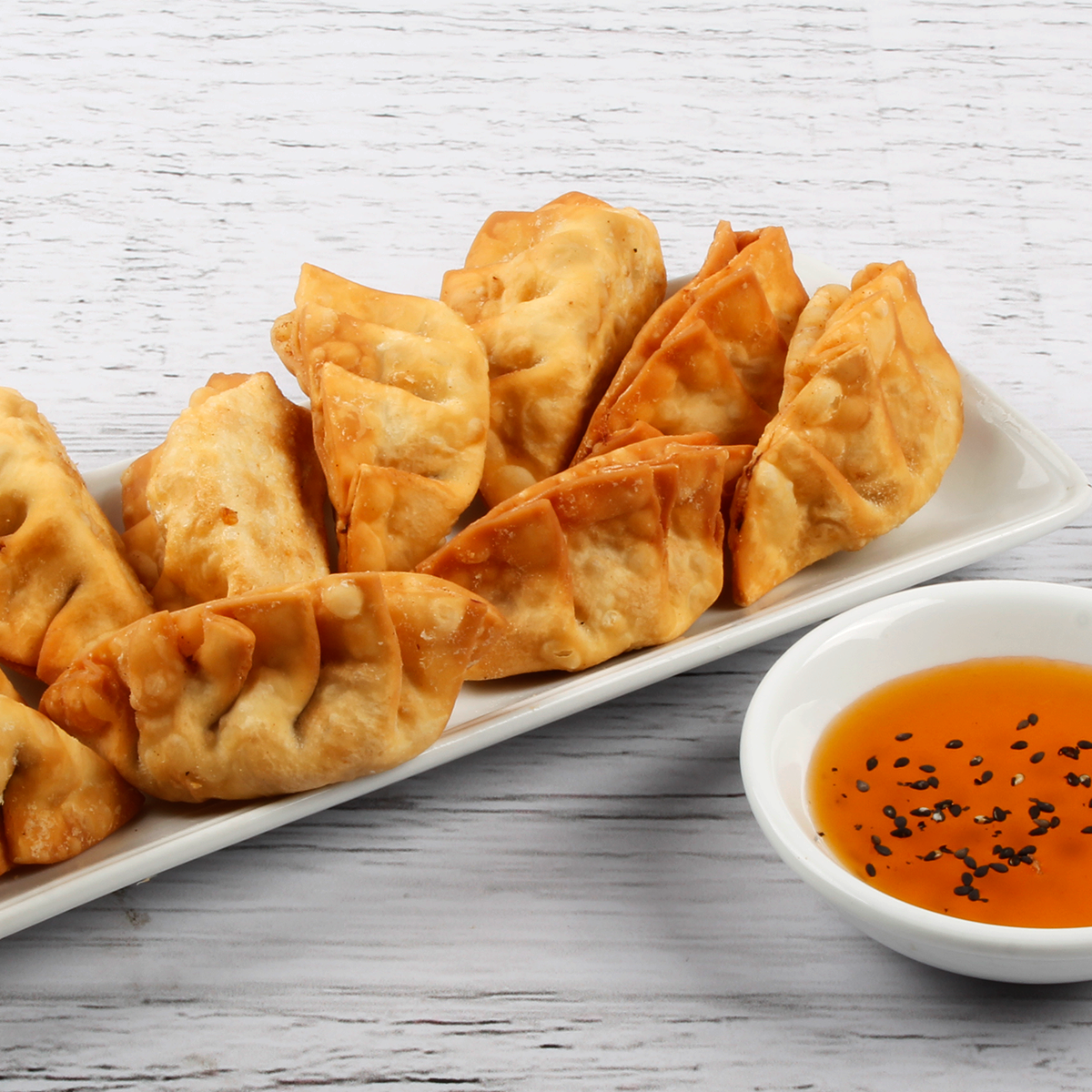 Empanaditas fritas rellenas de pescado y verduras en especias orientales.