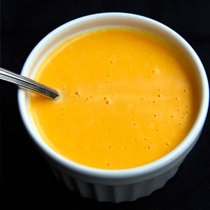 Relleno de langostino empanizado y palta, cubierto con pescado del día en salsa passion y coolie de maracuyá.