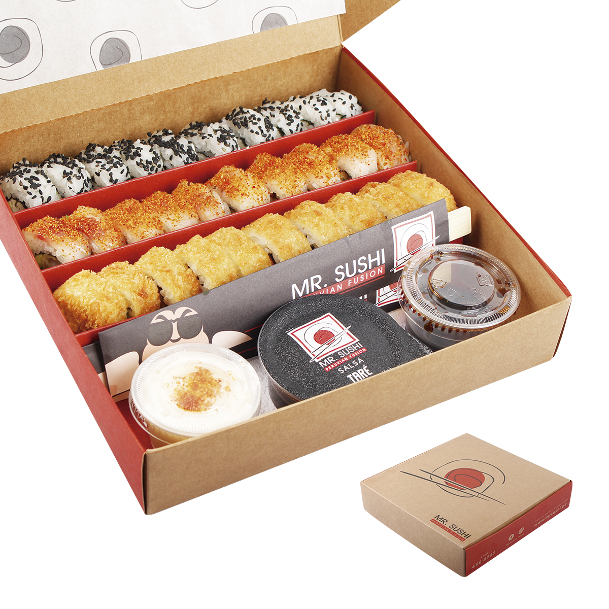 Combo Maki Box 50 Piezas + 3 bebidas 300ml