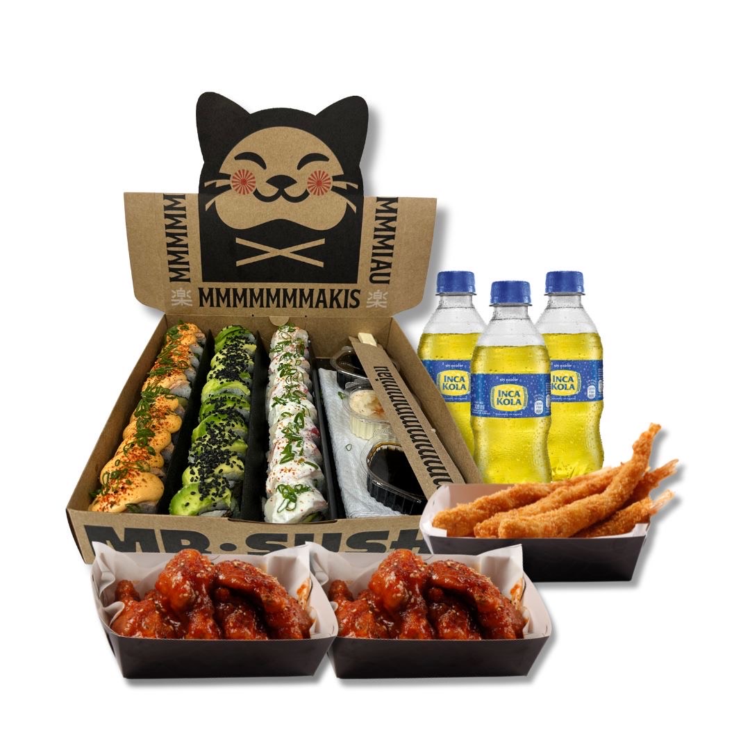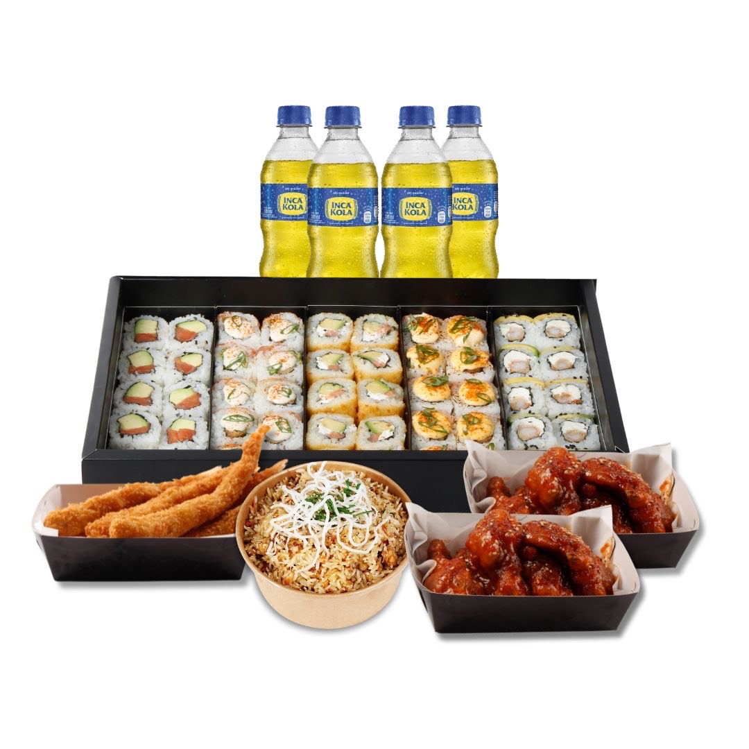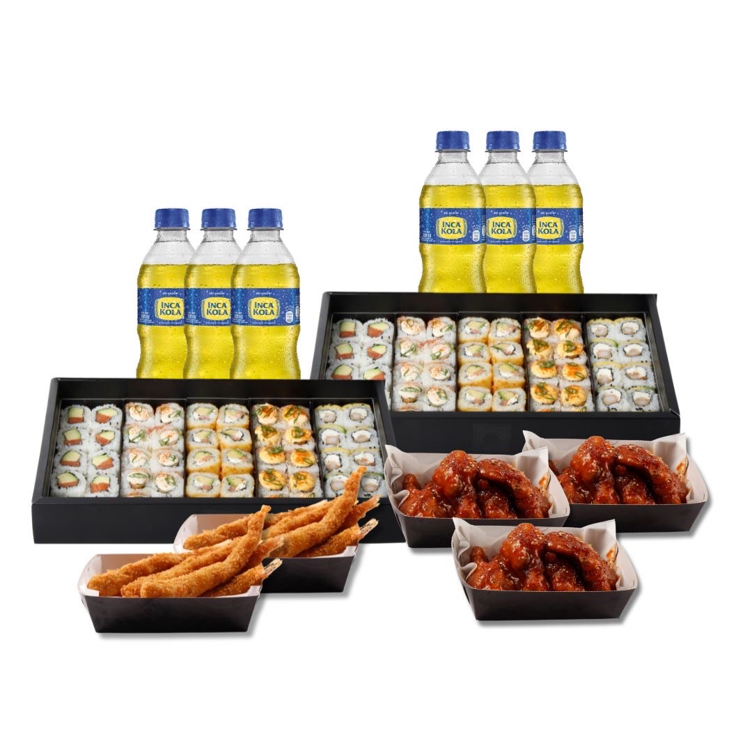 100 makis + 18 alitas + 10 ebi furai + 6 gaseosas 300ml