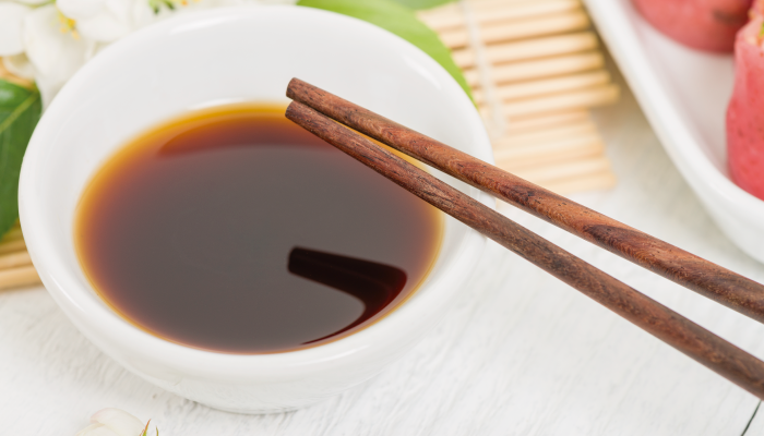 Empanaditas japonesas de masa siu cau rellenas pescado y verduras en salsa oriental.