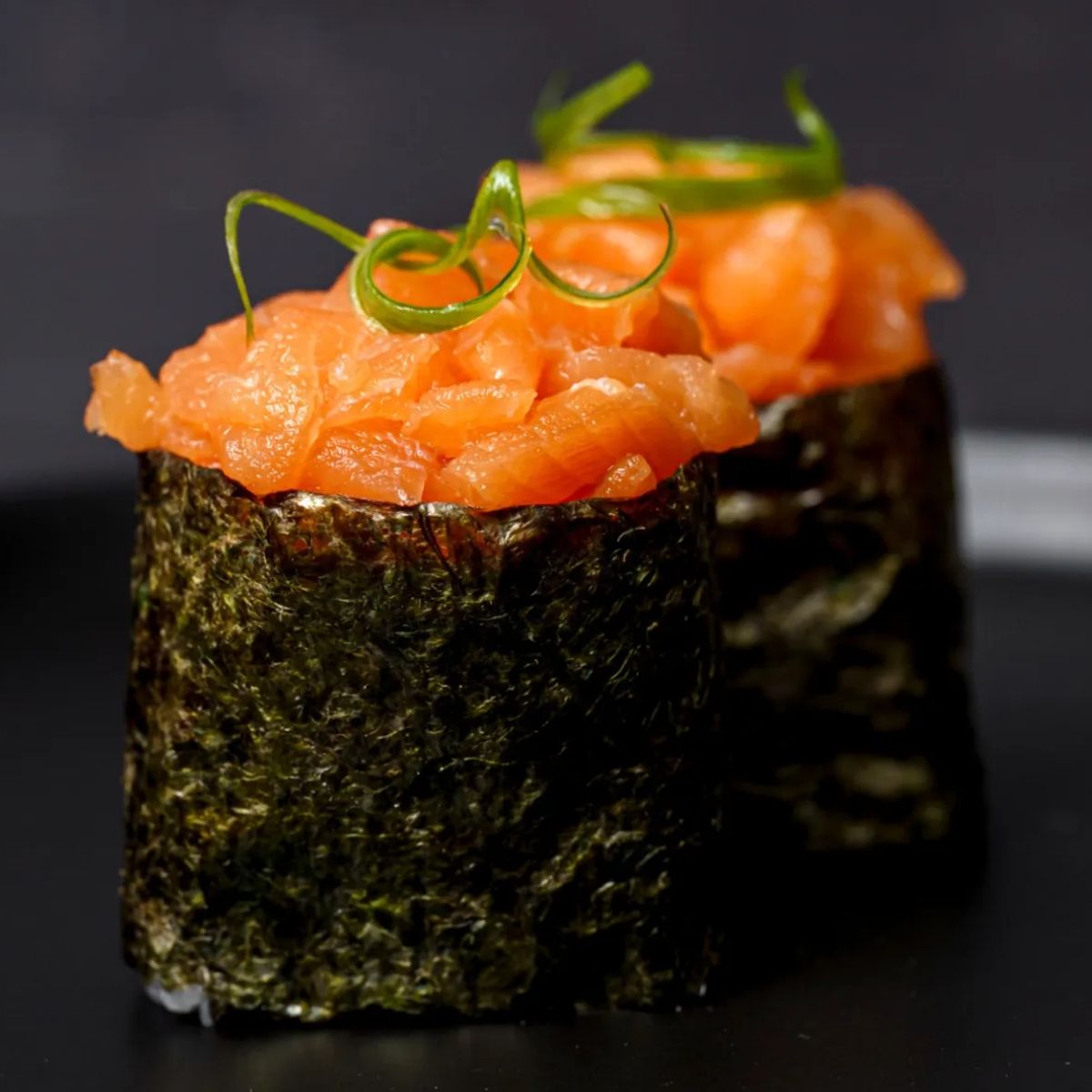8 Unidades de Gunkan (Canastilla de alga nori rellena de arroz, pescado o marisco y pequeños trozos de palta en salsa acevichada)