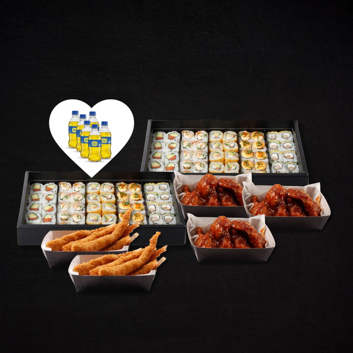 100 makis + 18 alitas + 10 ebi furai + 6 gaseosas 300ml