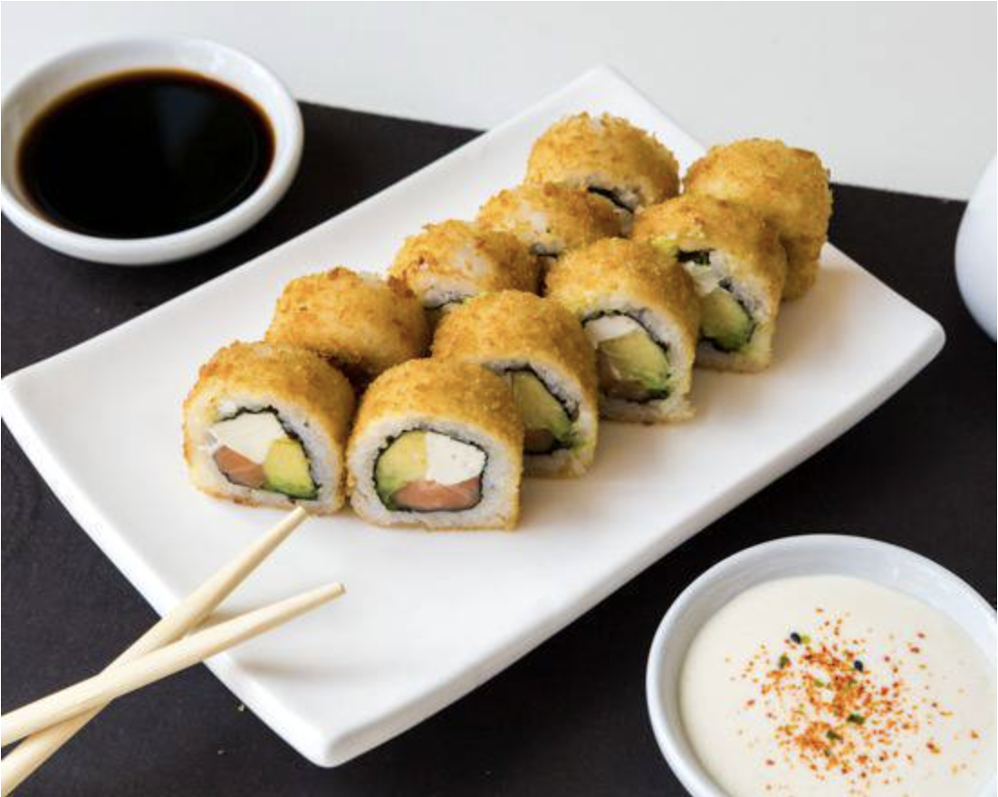 Relleno de pescado del día, queso crema y palta, empanizado con panko frito. (10 unidades)