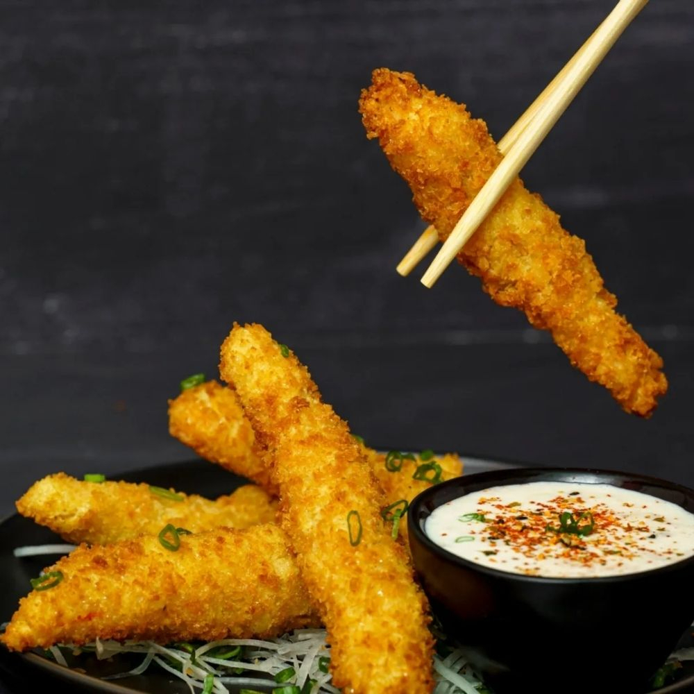 Relleno de bastones de pescado fresco y queso crema, cubierto de ajonjolí tostado mixto.