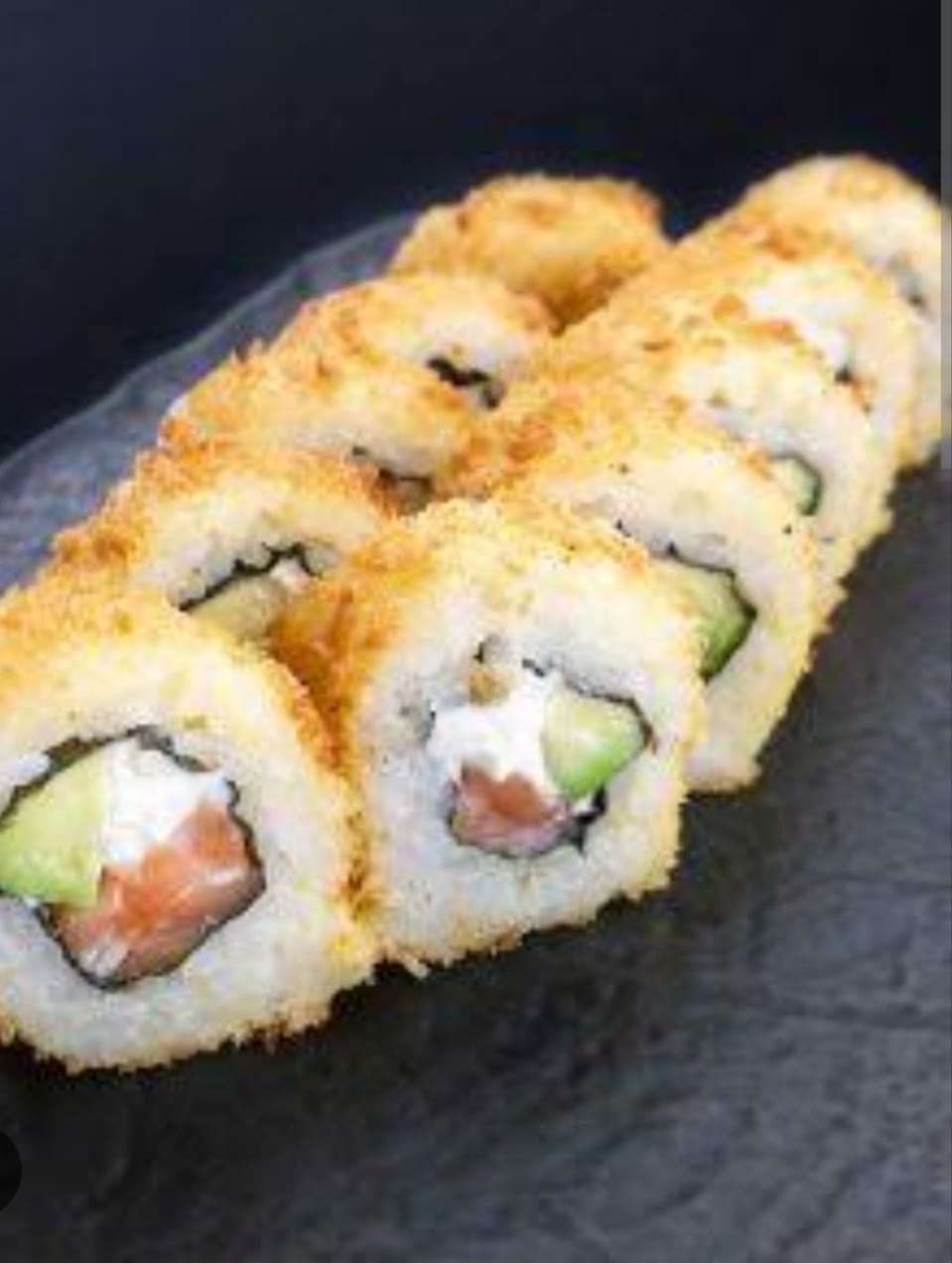 Roll clásico (Frito) palta y pescado furai.