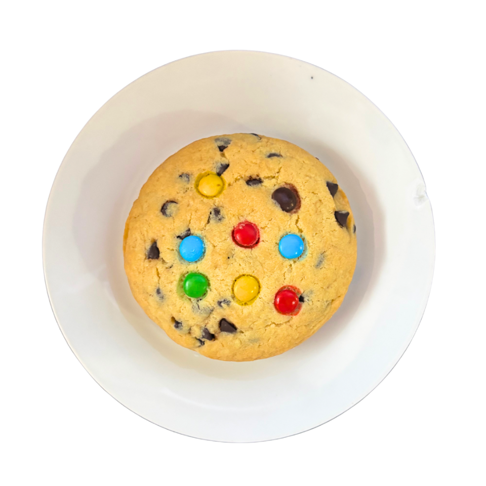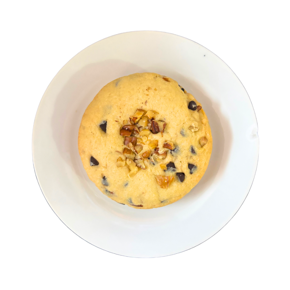 4 galletas esponjosas con chips de chocolate y mix de frutos secos, estilo new york.