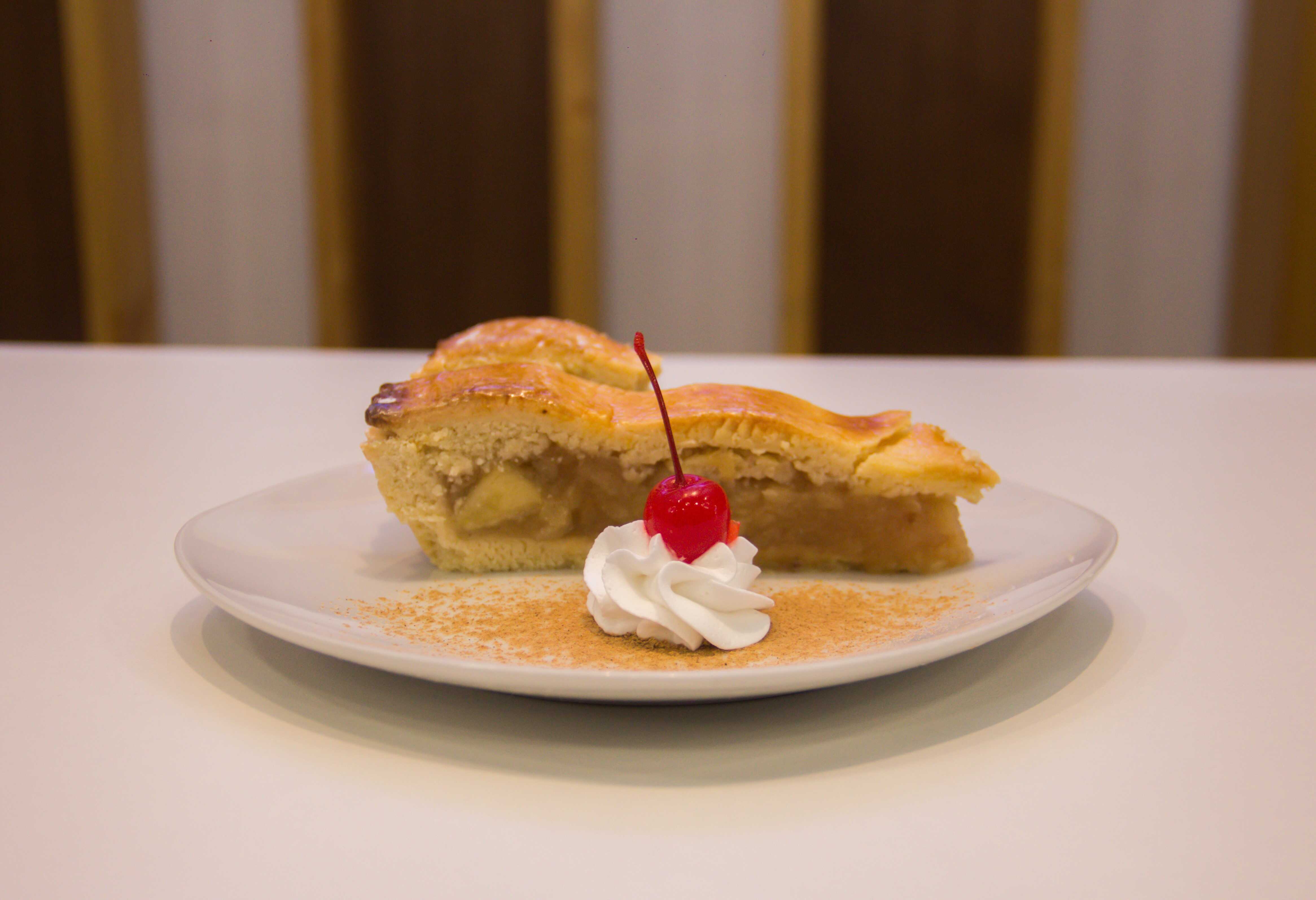 1 Porción con masa brisé, relleno de compota de manzana y canela.