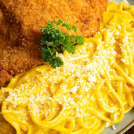 Fetuccini al alfredo con panko