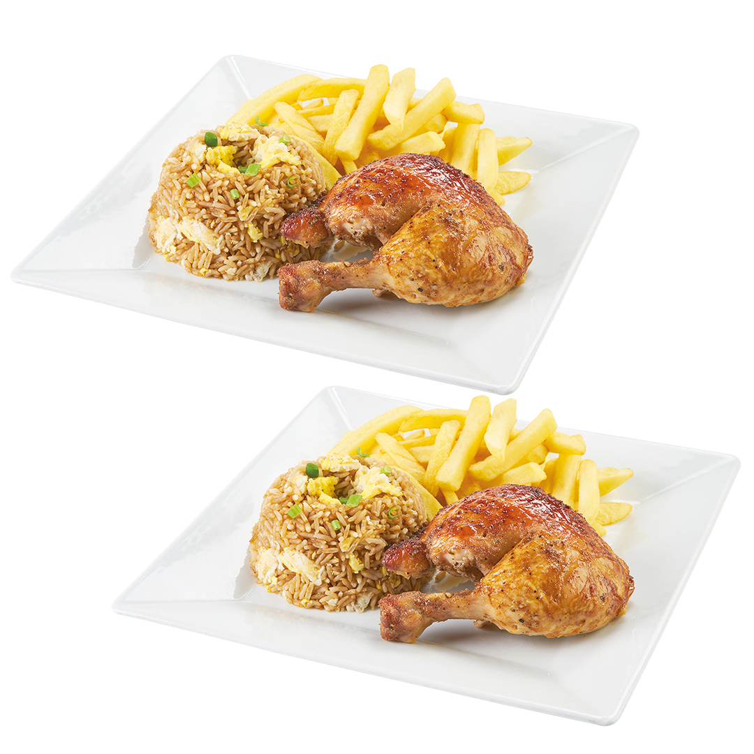 1/2 Pollo, papas, ensalada y 2 gaseosas personales.