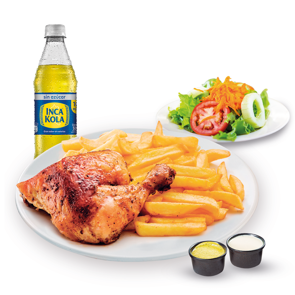 1/4 Pollo con Papas, Ensalada y Gaseosa Personal