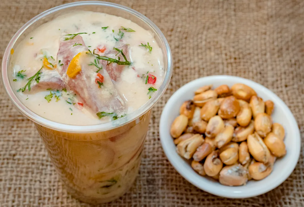 Platillo individual: riquísima leche de tigre de pescado llena de sabor. Presentación de 8 onzas.
