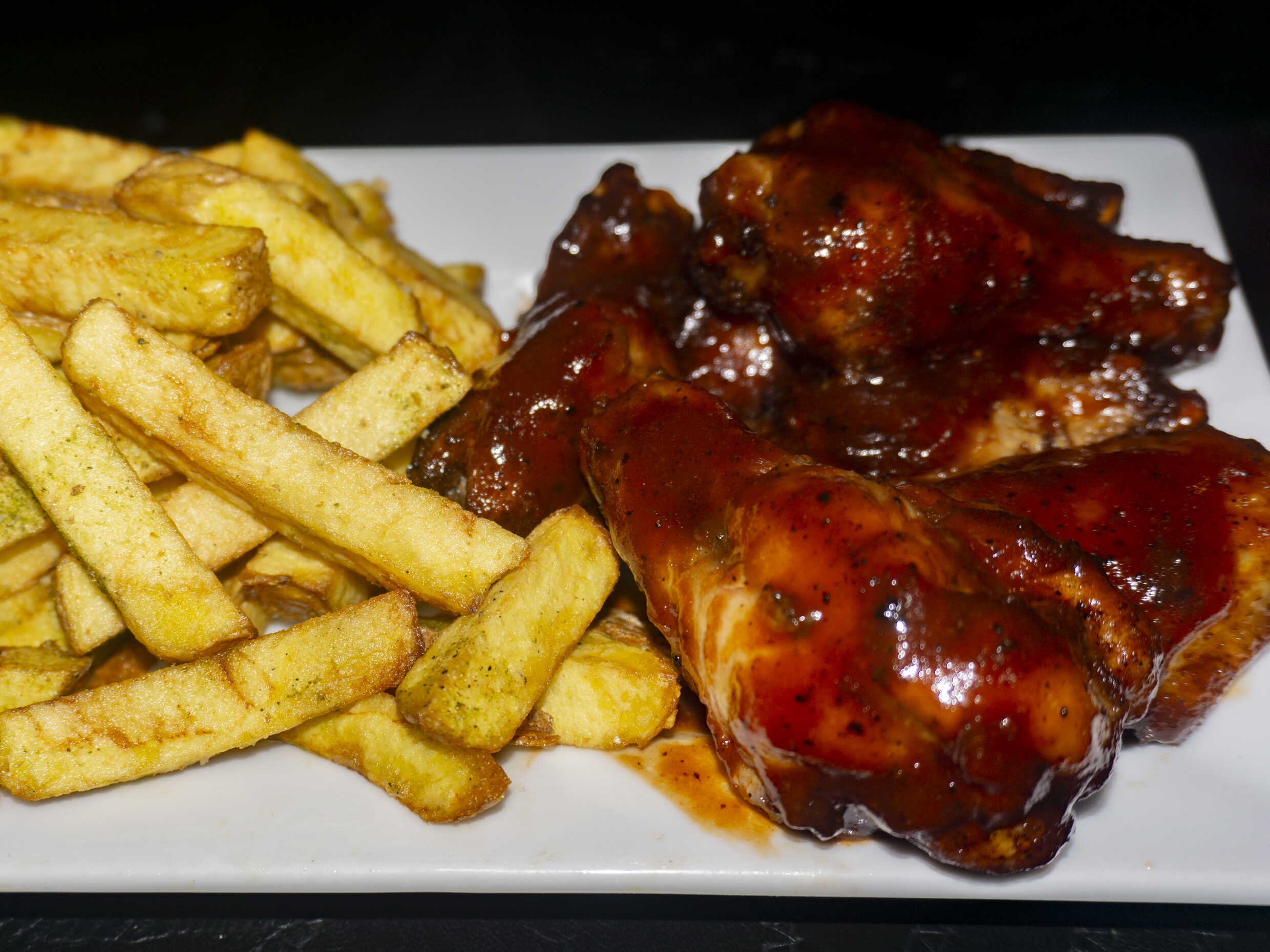 6 unidades de alitas en salsa bbq original acompañado con papas nativas