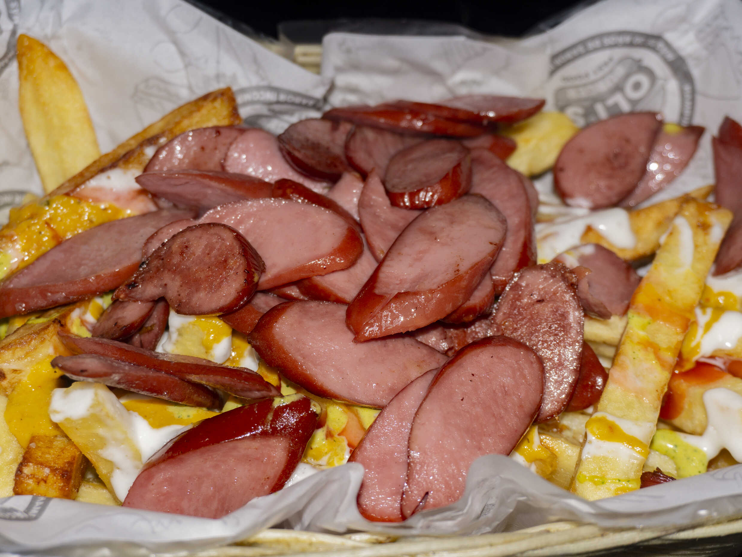 Crujientes papas fritas, chorizo, queso con cremas a elección acompañado de abundantes papas fritas.