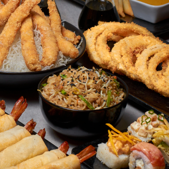 5 Rollitos fritos de masa primavera relleno de langostinos marinados en especias japonesas, servido con salsa thai.