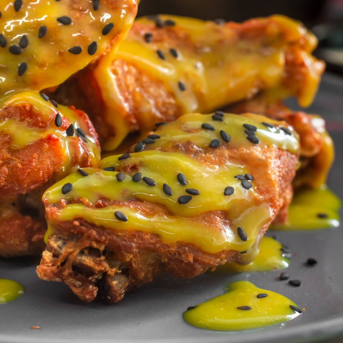6 uds Rellenas de pollo y salsa de ostión, servidas con salsa passion.