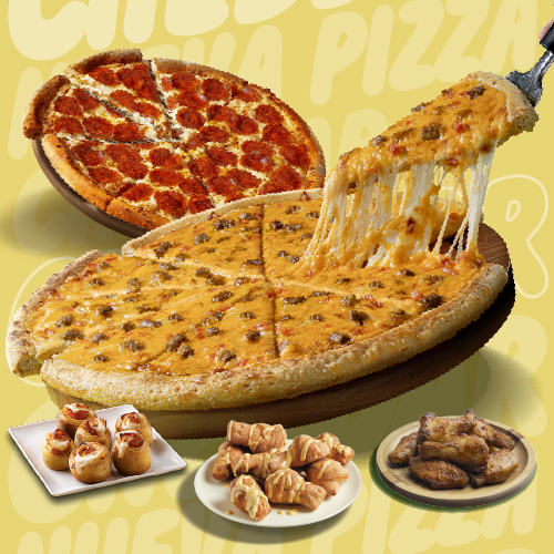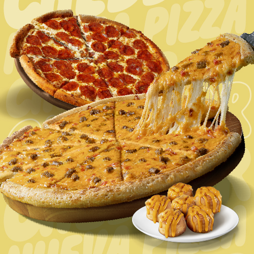 1 Cheddar Familiar con Borde Cheddar + Rolls Cheddar x3 + Cup Cheddar