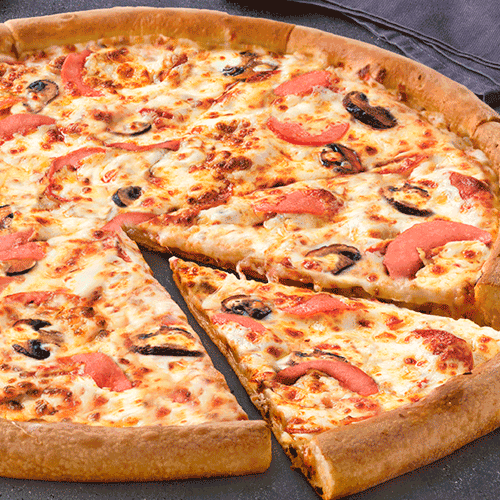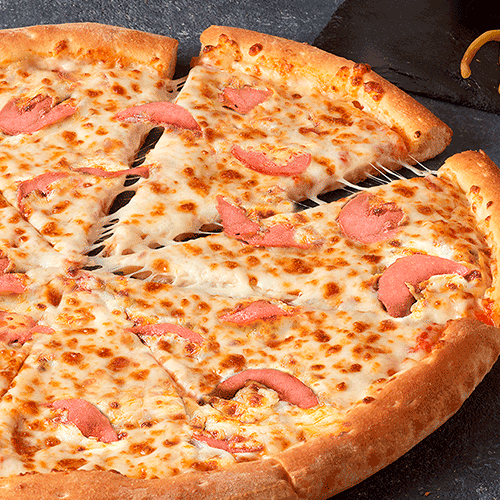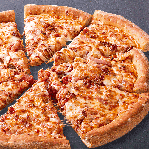 Pizza con jamón, tocino, sazonador italiano y 6 tipos de queso.