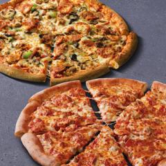 2 Pizzas Grandes Clásicas y un adicional. Promoción válida del 01/09/2022 hasta el 31/12/2022, Stock mínimo de 300 unidades. No acumulable con otras promociones.