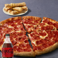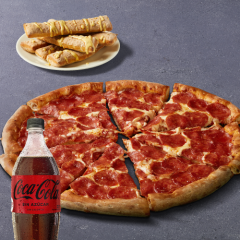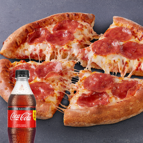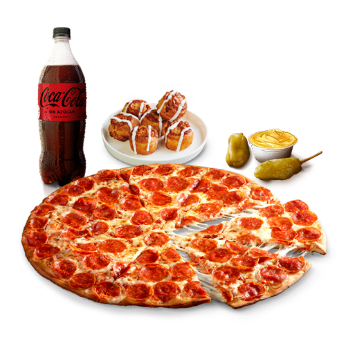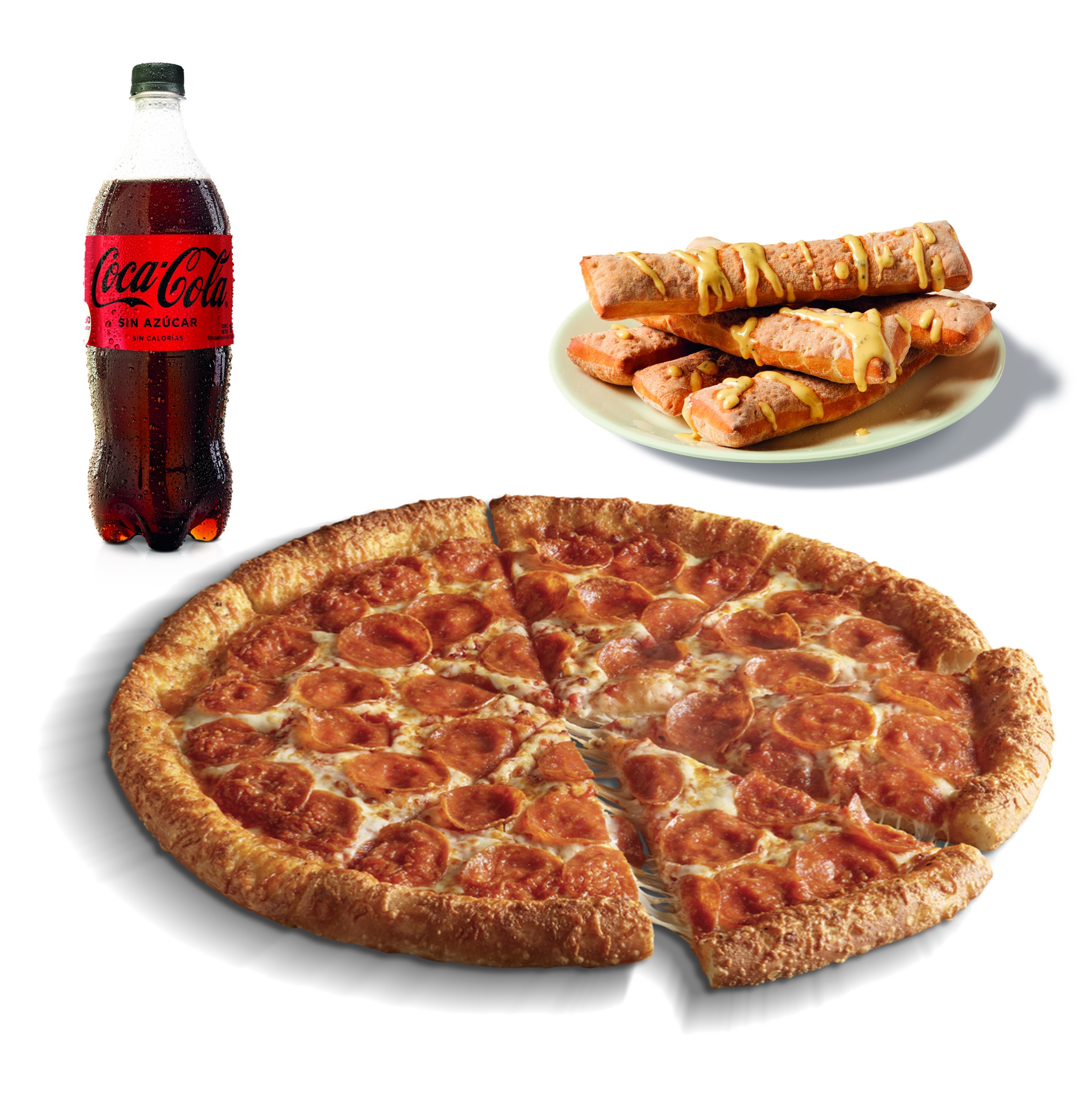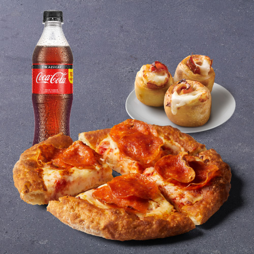 Pizza Personal Clásica, Gaseosa Personal y 3 Rolls de Pepperoni. Promoción válida del 01/09/2022 hasta el 31/12/2022, Stock mínimo de 300 unidades. No acumulable con otras promociones.