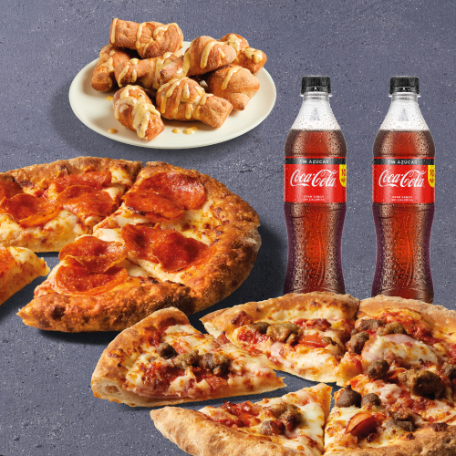 2 Pizzas Familiares Clásicas, 1 adicional y Gaseosa 1.5 Lt . Promoción válida del 01/09/2022 hasta el 31/12/2022, Stock mínimo de 300 unidades. No acumulable con otras promociones.