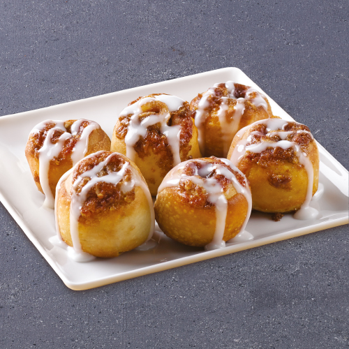 6 Rolls de canela, rolls enrollados con dulce de canela, cubiertos con azúcar glaseada.