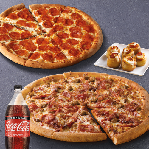 2 Pizzas Grandes Clásicas, 1 adicional y Gaseosa 1.5 Lt . Promoción válida del 01/09/2022 hasta el 31/12/2022, Stock mínimo de 300 unidades. No acumulable con otras promociones.