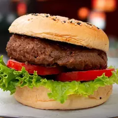 Jugosa carne, lechuga, tomate, salsa de la casa más esponjoso pan de la casa.