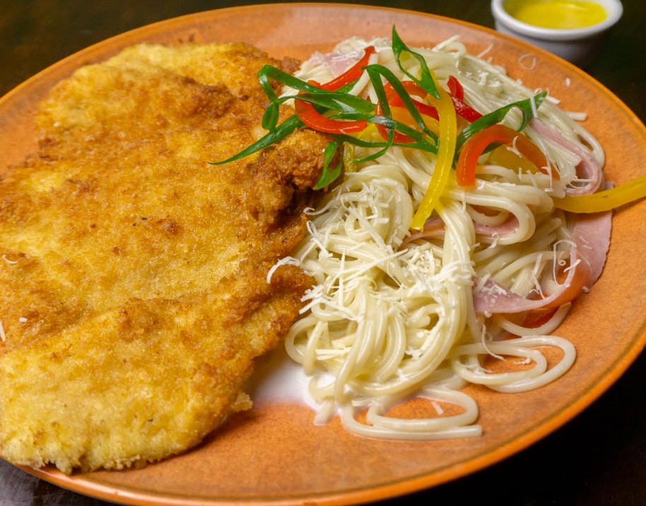Espagueti Alfredo con Milanesa