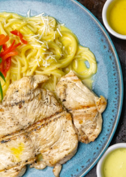 Pechuga a la Parrilla con Espagueti a la huancaina
