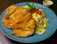 Milanesa de Pollo con Fetuccini huancaína