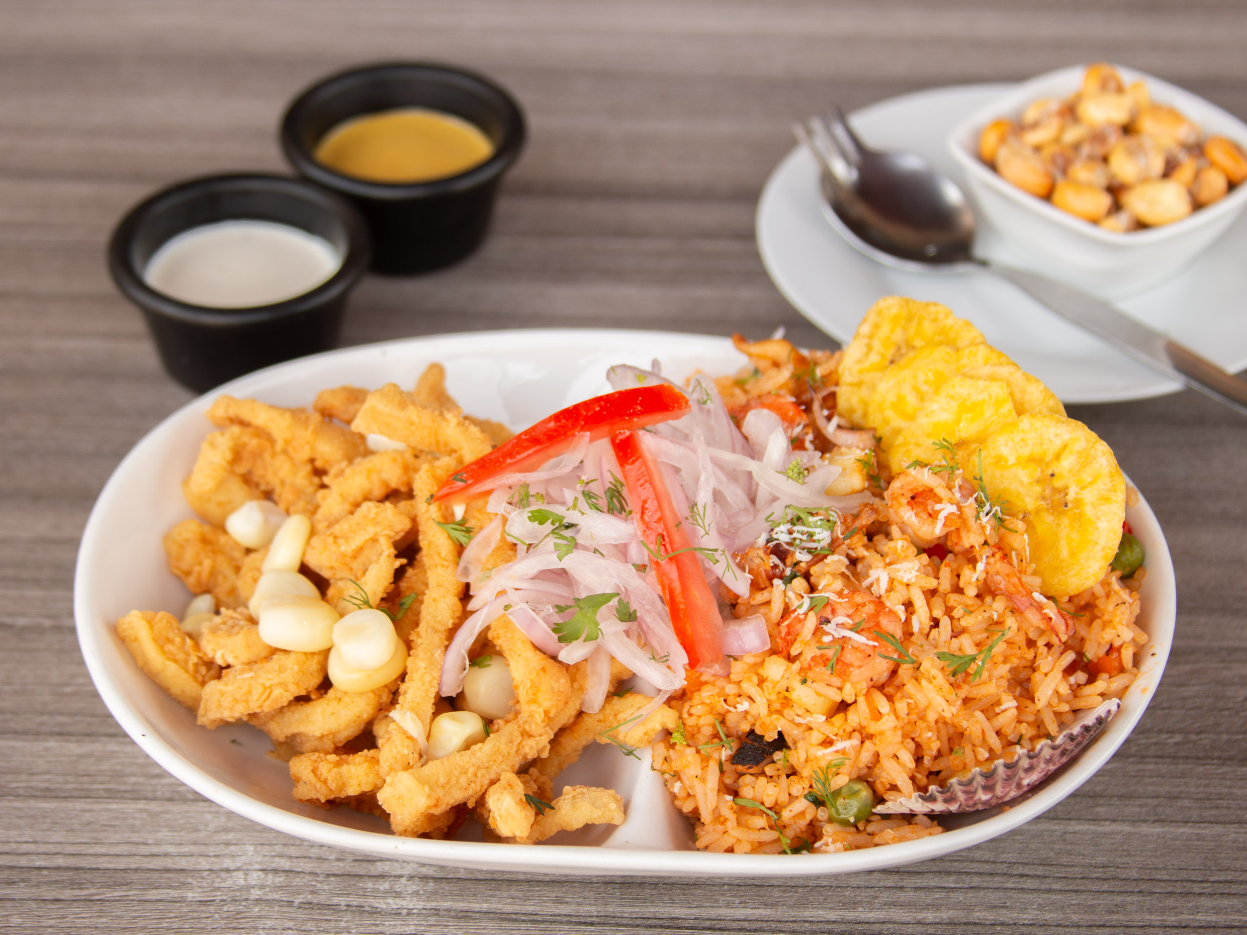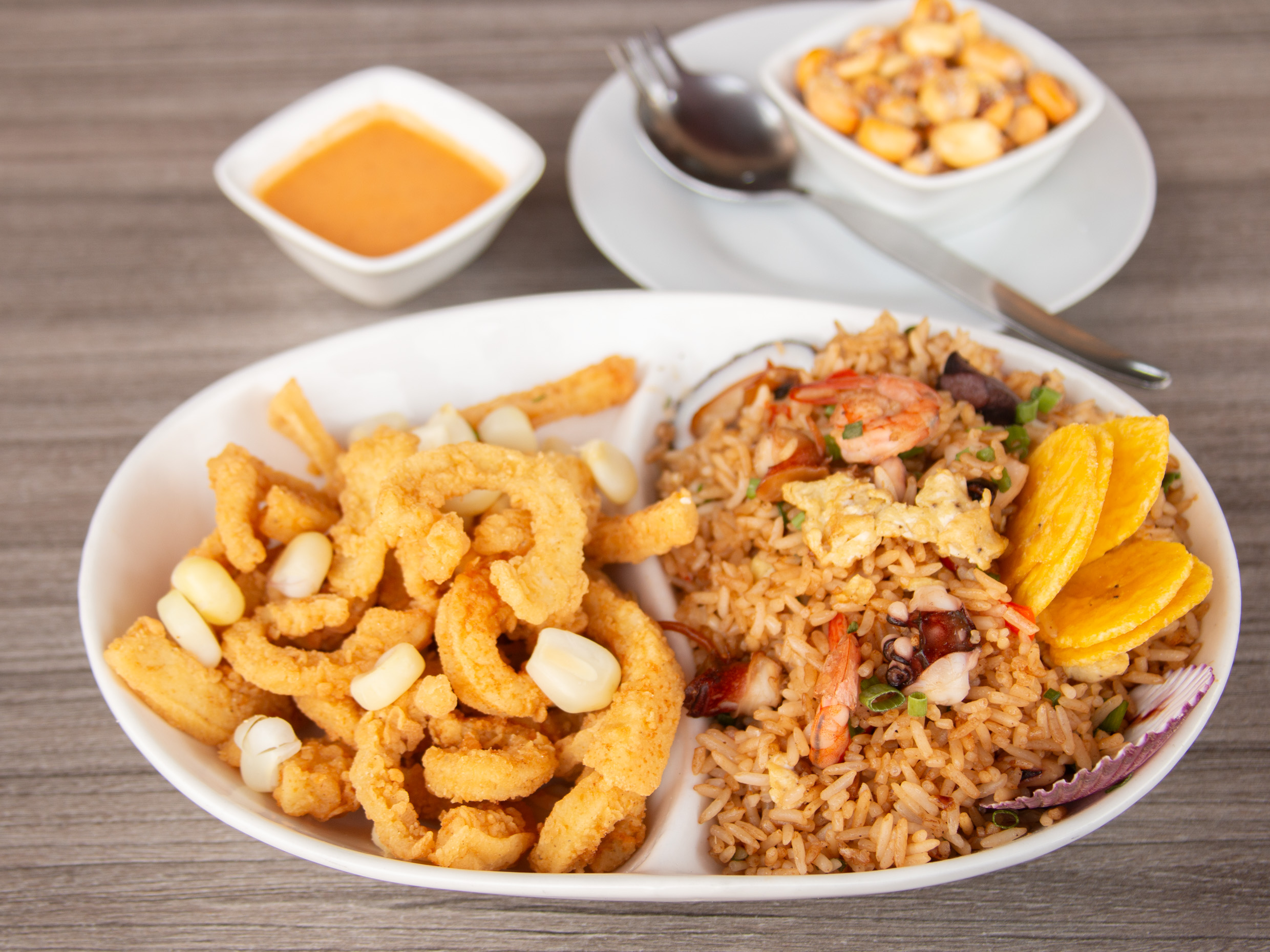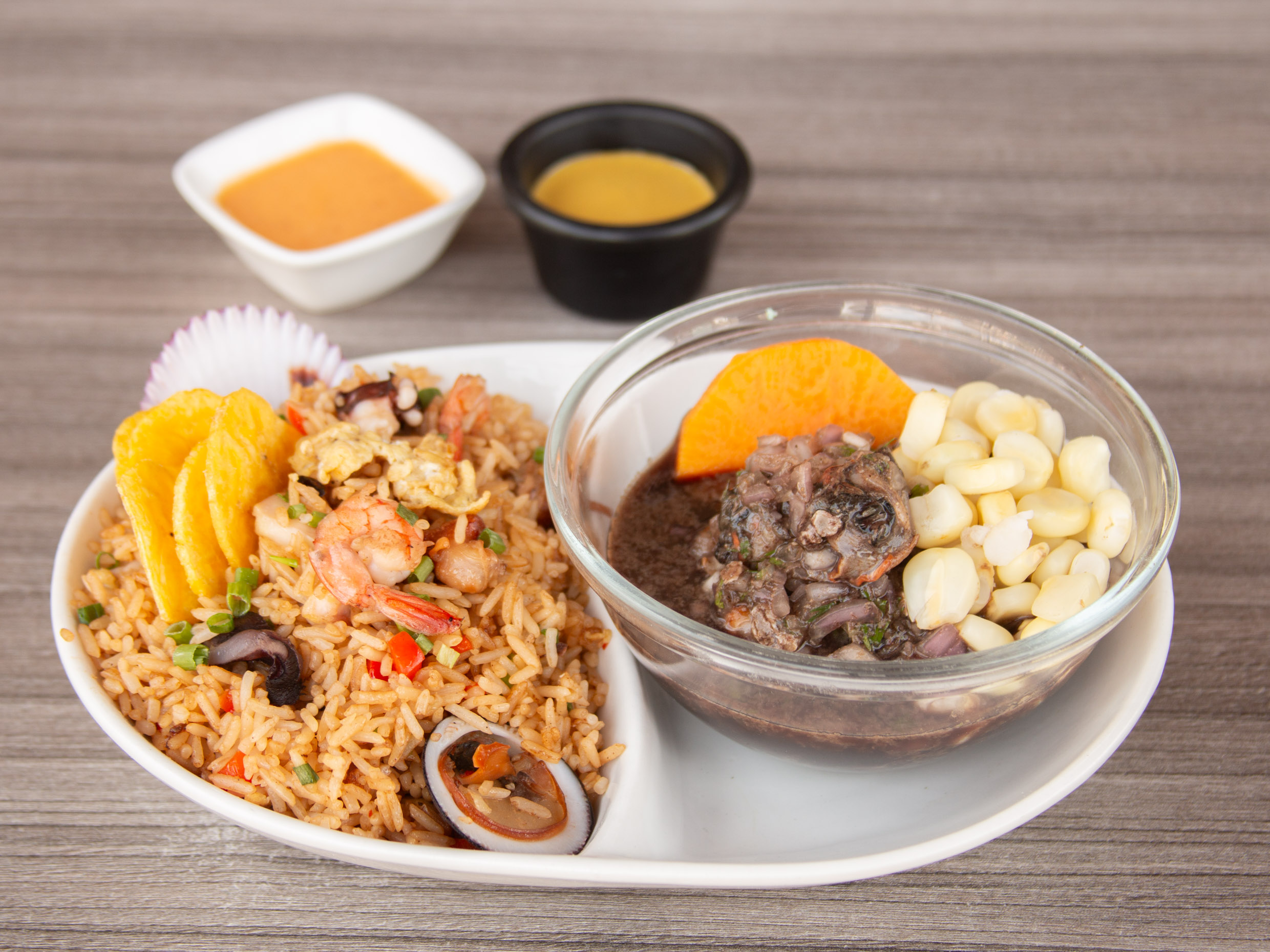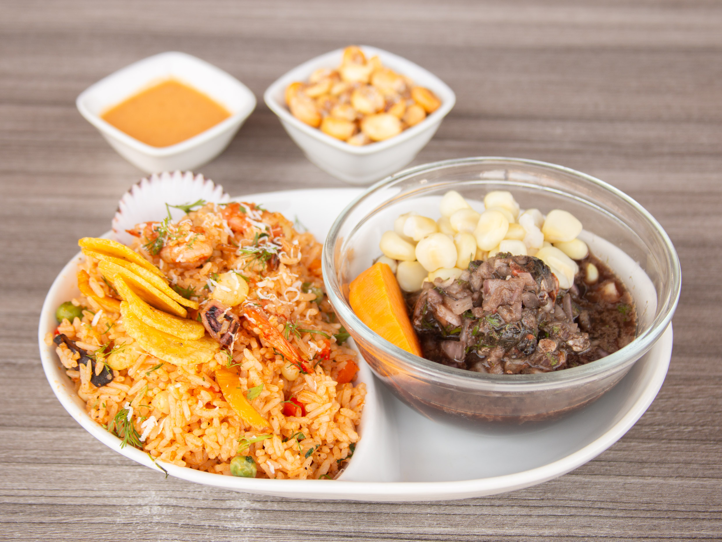 Arroz con Mariscos, Conchas Negras y Chicharrón