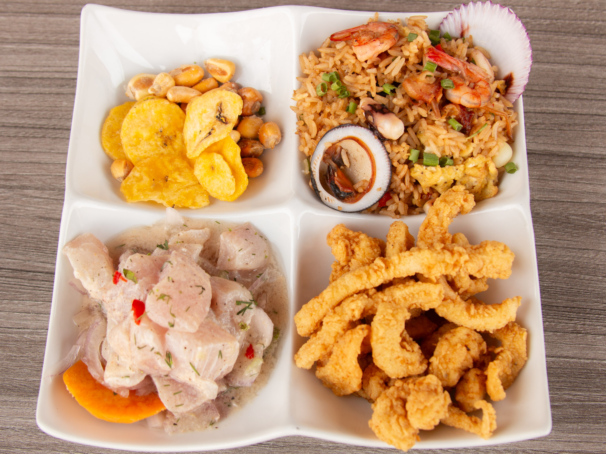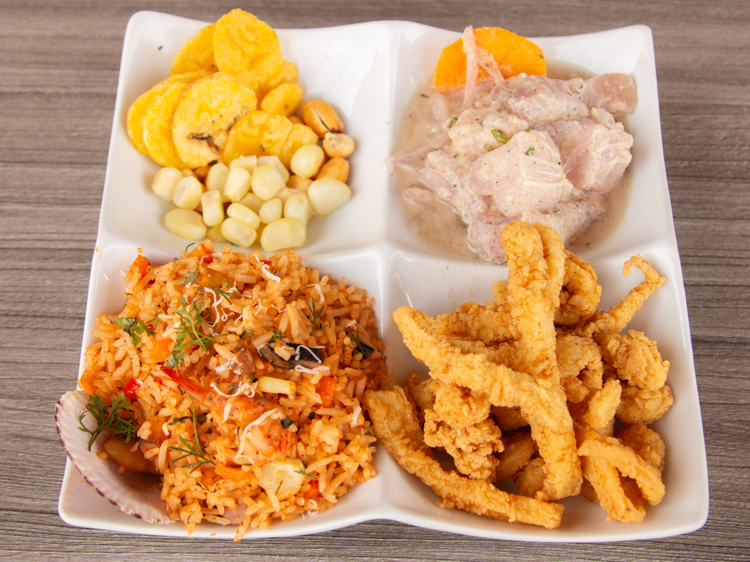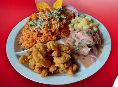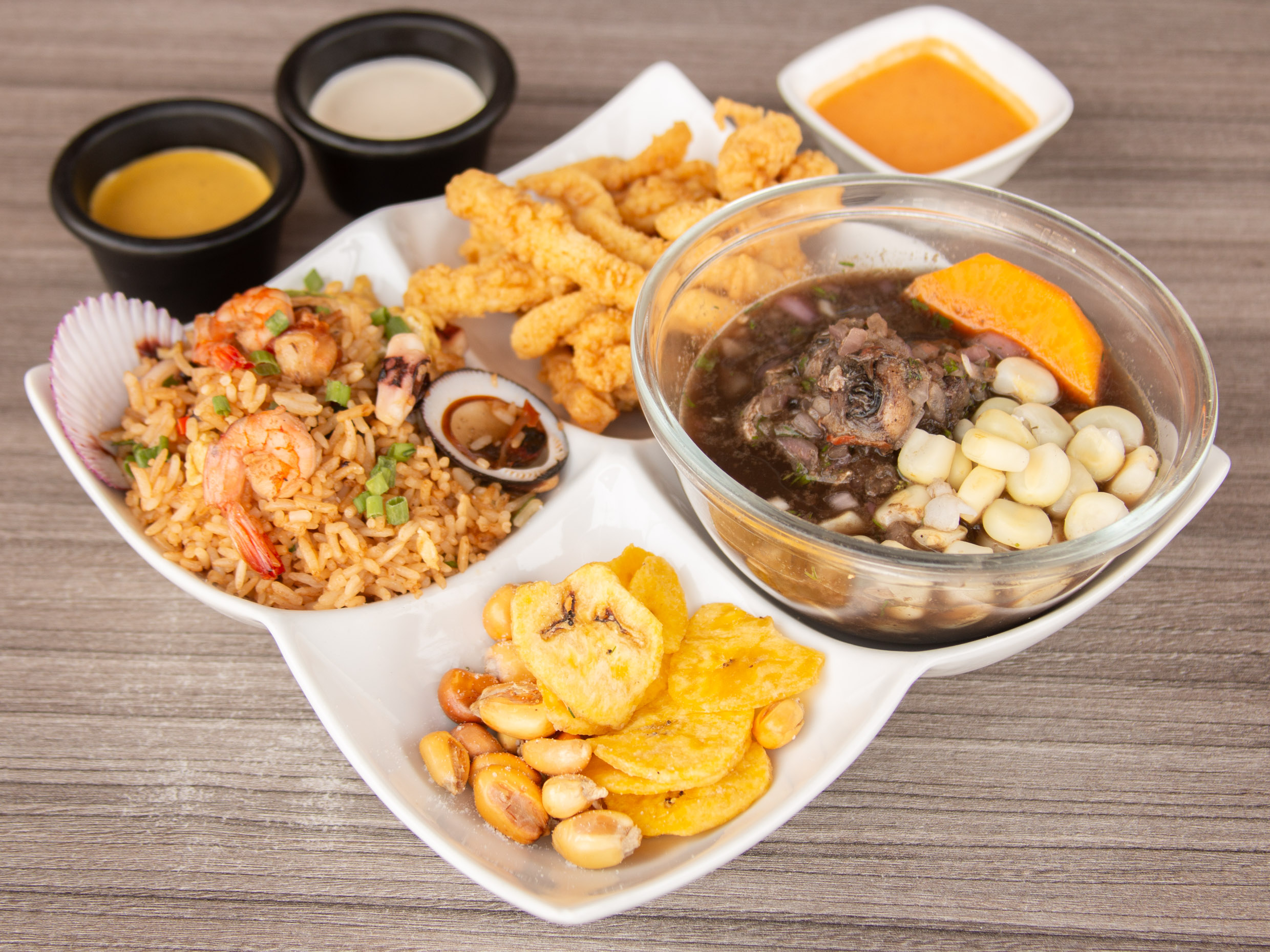 Arroz con Mariscos, Conchas Negras y Chicharrón
