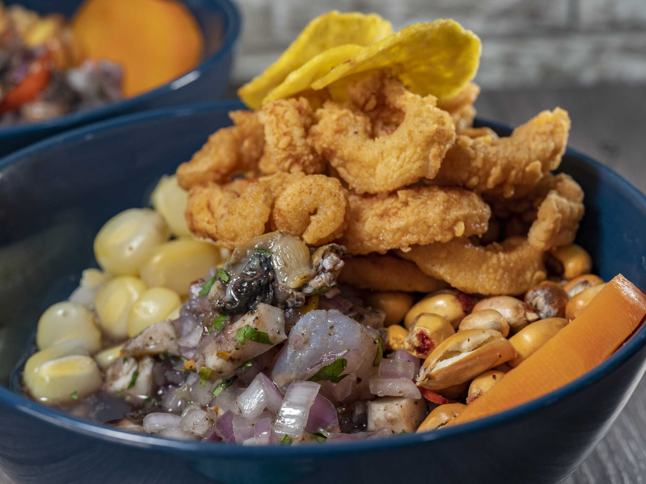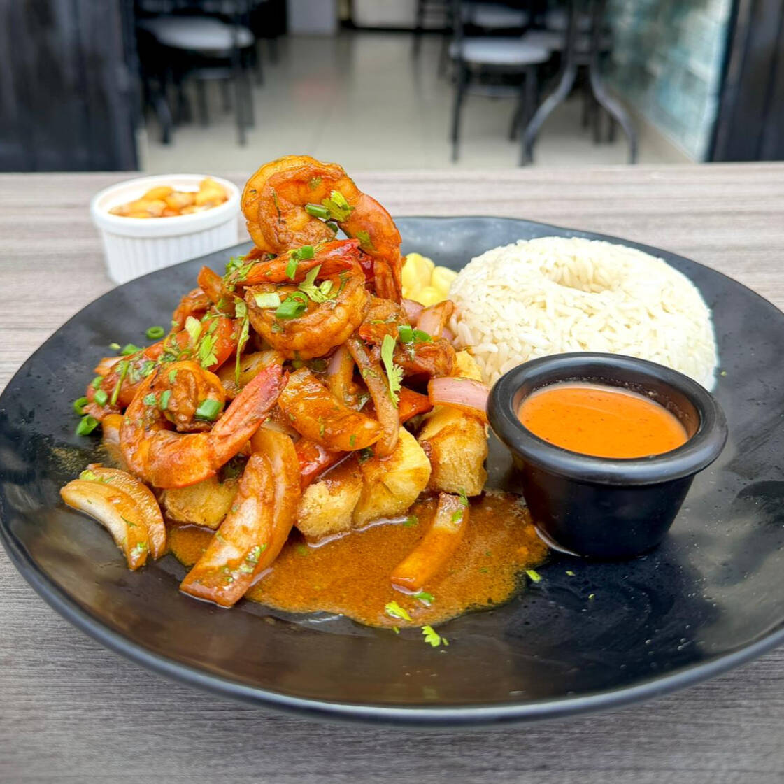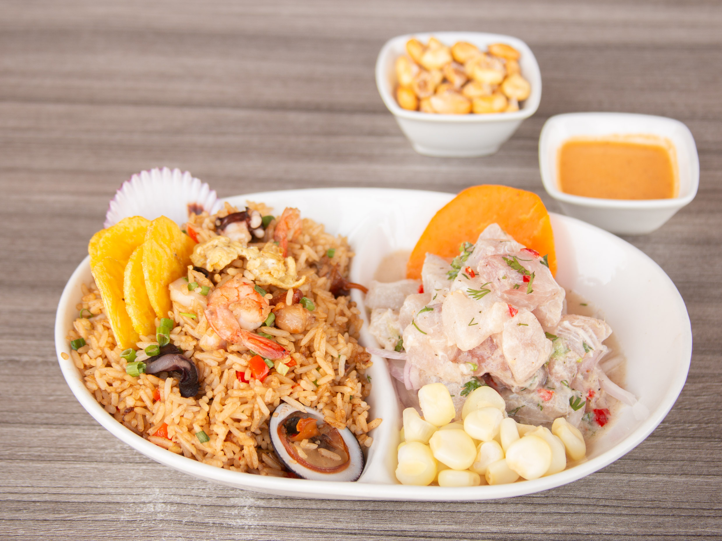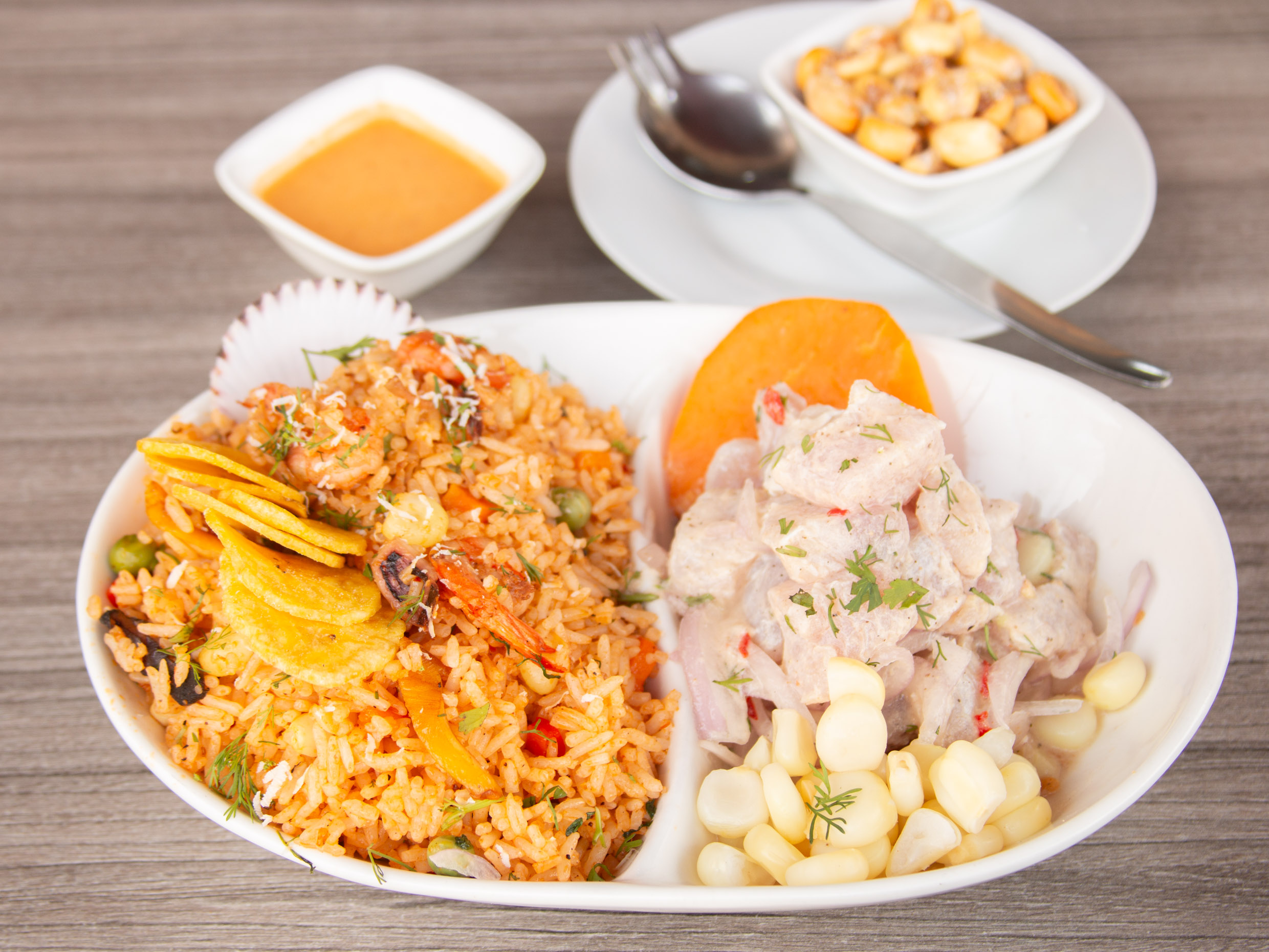 Arroz con Mariscos, Conchas Negras y Chicharrón