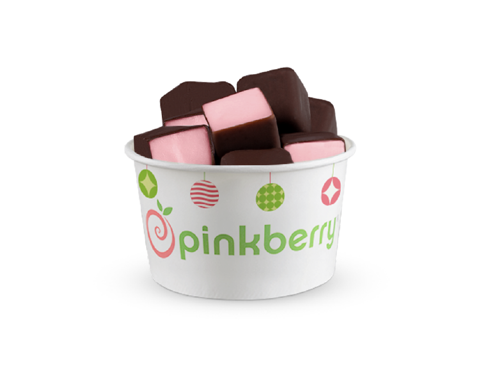 16 Bombones de Frozen Yogurt sabor Fresa, bañados en Cobertura de Chocolate