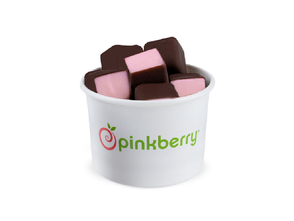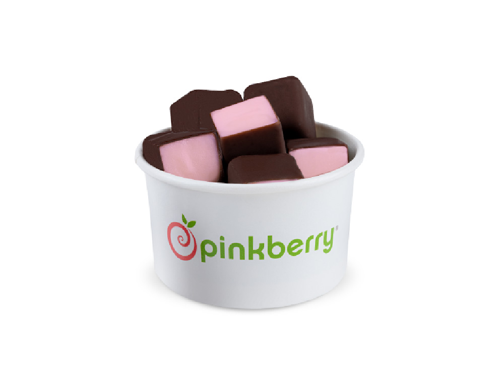 16 Bombones de Frozen Yogurt sabor Fresa, bañados en Cobertura de Chocolate