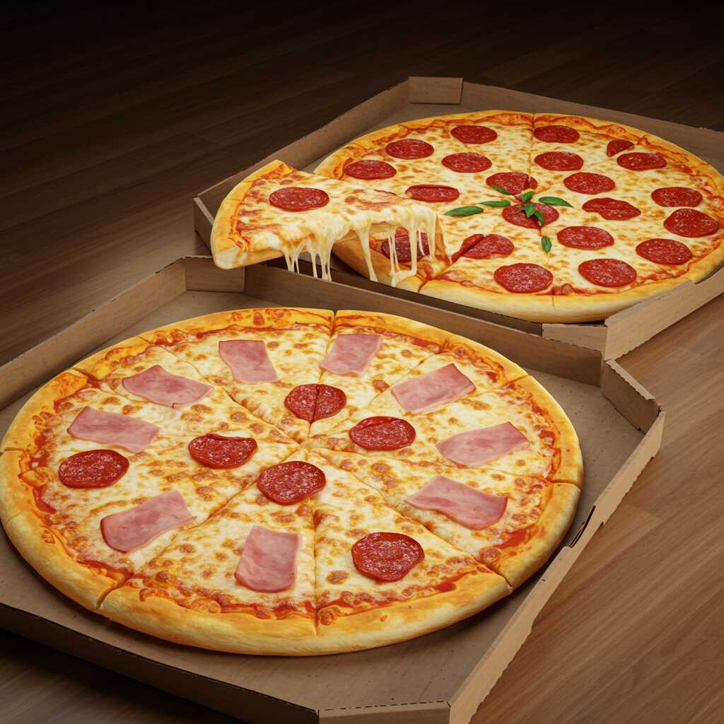 Elige tus pizzas familiares favoritas entre Pepperoni, Americana, Hawaiana o Siciliana