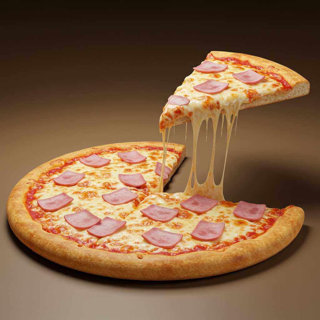 Queso mozzarella, queso parmesano, jamón y salsa pizzera.