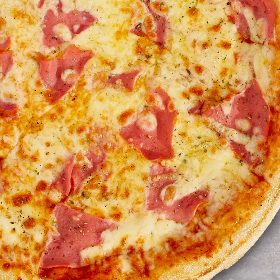 Masa Artesanal, Salsa Pomodoro, Queso Mozzarella y Jamón inglés