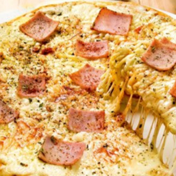Rica pizza personal 20 cm, con salsa pomodoro, jamon americano y full mozarella