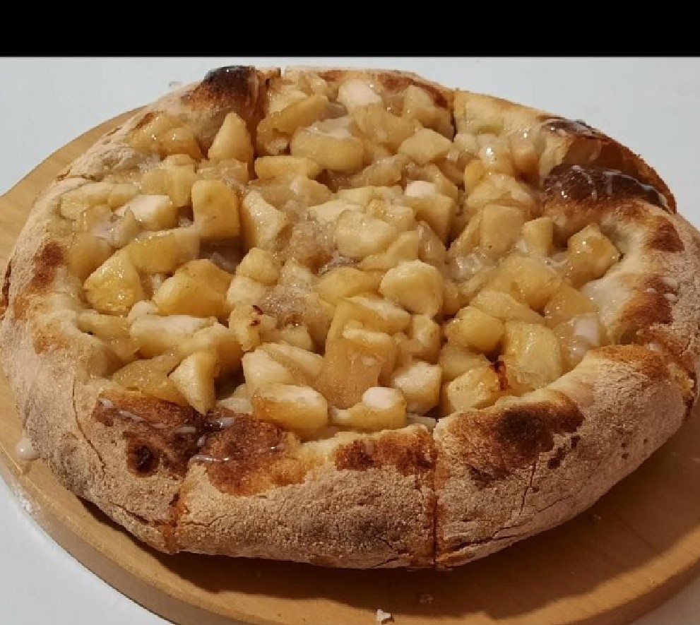 Pizza la chama de 10 porciones con Salsa de tomate, queso mozzarella, jamón, chorizo, pollo y maíz venezolano.
