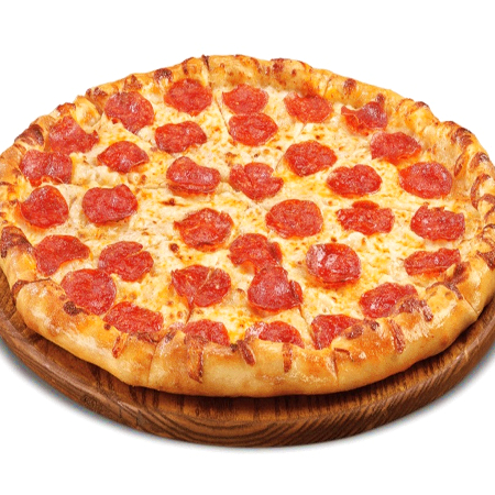 Pizza de masa artesanal de 33 cm. Ingredientes: pepperoni y mozzarella.