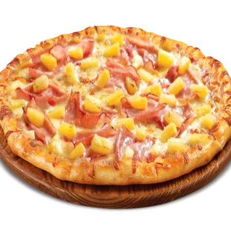 Pizza de masa artesanal de 21 cm. Ingredientes: jamón, piña y mozzarella.
