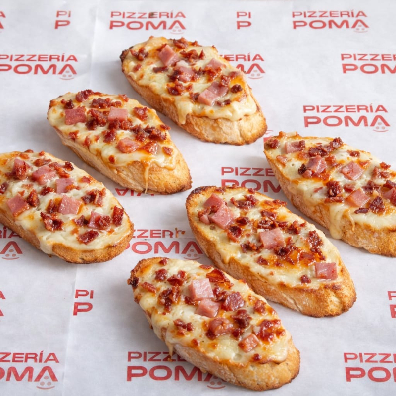 Pan al ajo con jamón y queso.