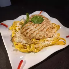 Salsa al pesto con pechuga o bistec.