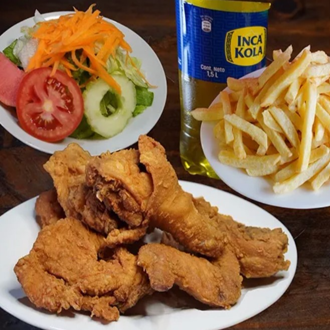 Ala broster + papás + Pepsi + cremas.
