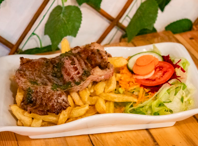 Incluye filete 100 g, papas fritas, ensalada y cremas.