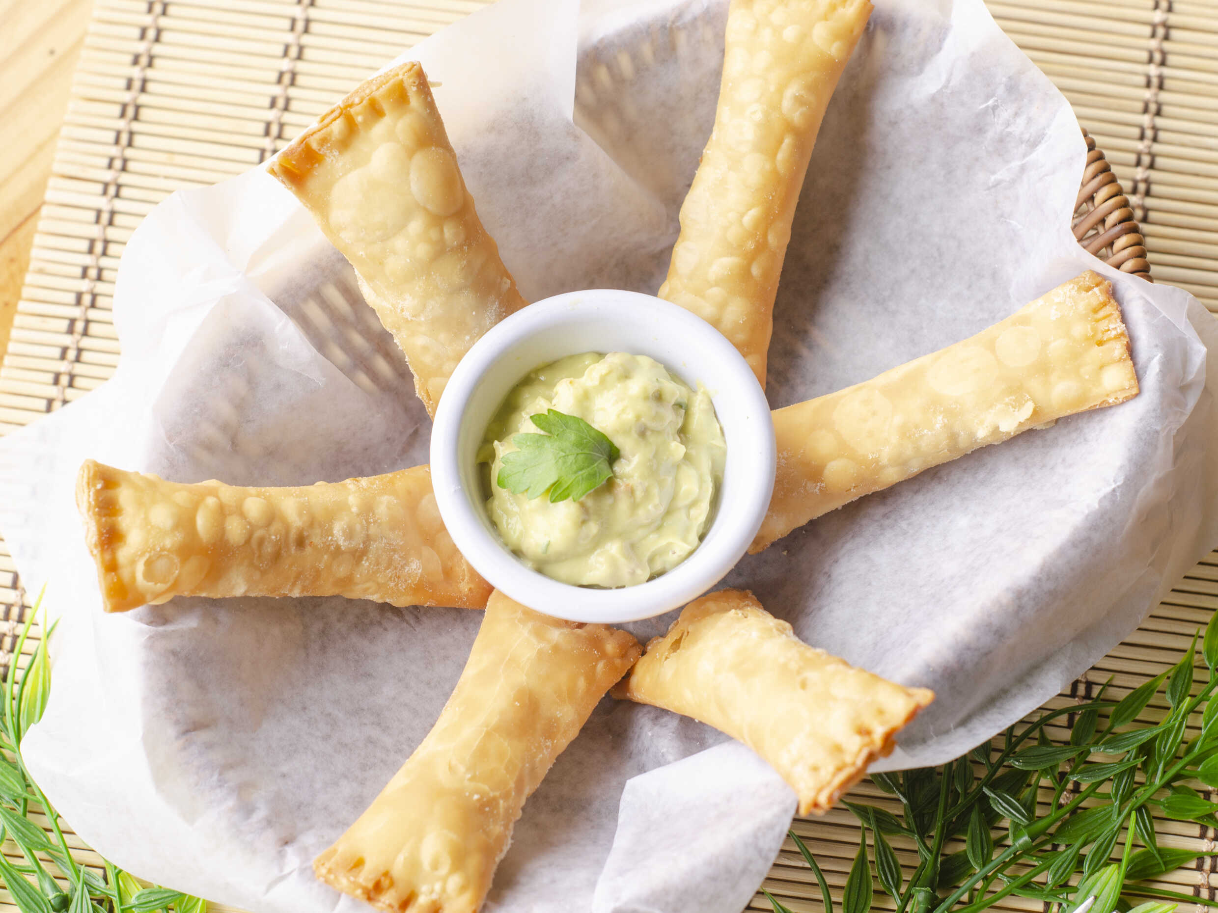 Tequeños dorados, rellenos de pollo a la brasa Excelencia y delicioso queso, acompañado de nuestra receta de guacamole.