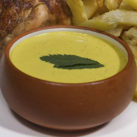 Un pollo a la brasa entero, jugoso y doradito, con papas fritas crujientes y las clásicas salsas: mayonesa y ají. ¡Perfecto para compartir y disfrutar el sabor peruano que encanta a todos!.